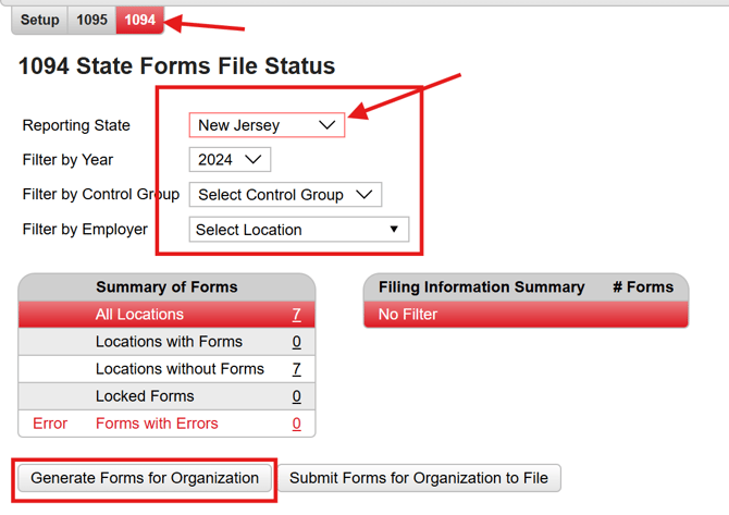 - Go to Generating 1094 State Forms.