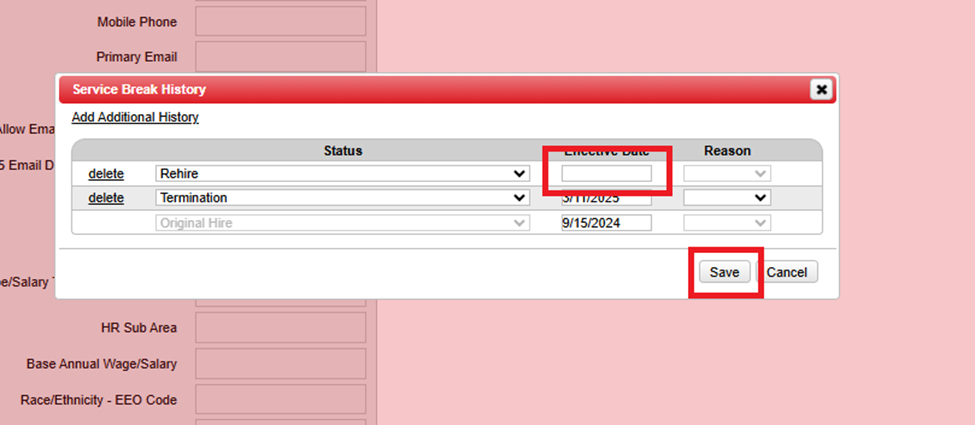 How do I adjust an employees rehire date?