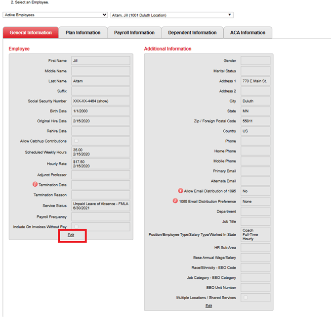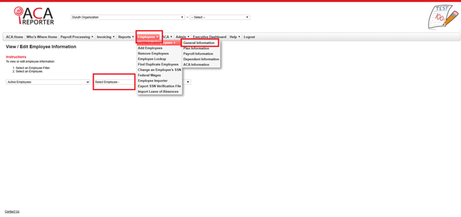 3.Drop down the select employee arrow and search for the employee requiring an update