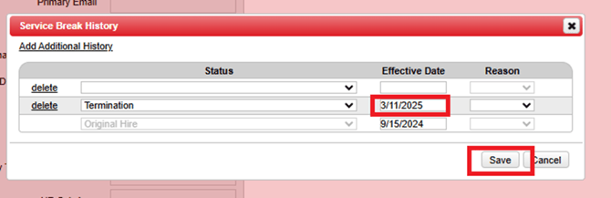 6.Select Effective date box and adjust date and Select Save.