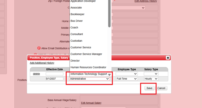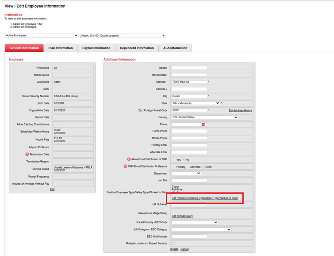 5. Select Edit Position/Employee Type/Salary Type/Worked in State.