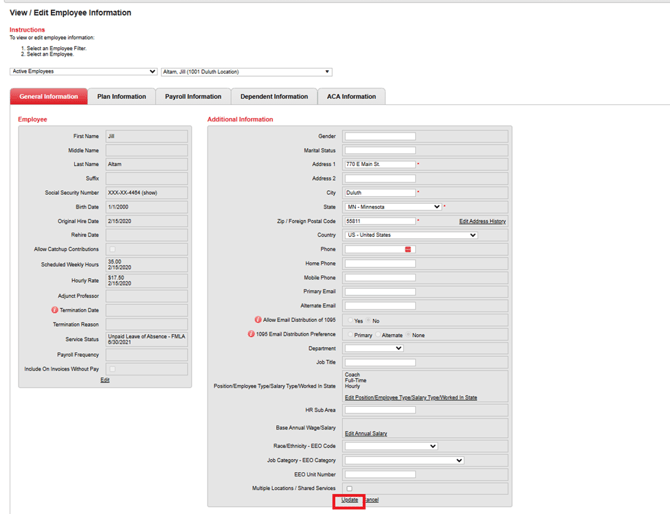 3.Drop down the select employee arrow and search for the employee requiring an update