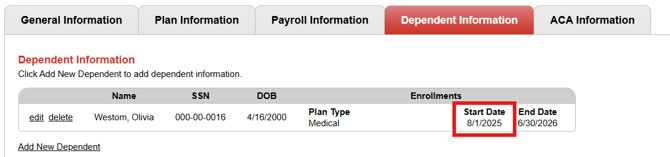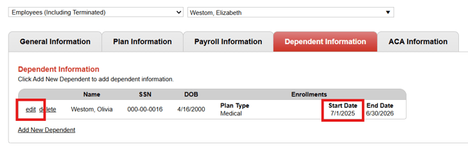 1. From the main menu bar, select Employees, then View/Edit Employees, then Dependent Information.