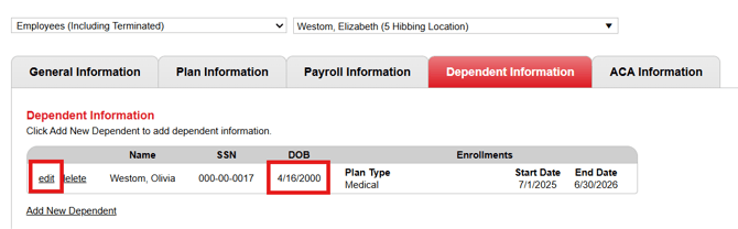 4. Select edit next to the covered individual requiring the update.