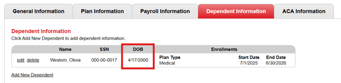 6. Review the revised information on the Dependent Information tab.