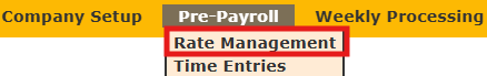 - From the main menu bar, select Pre-Payroll, then Rate Management.